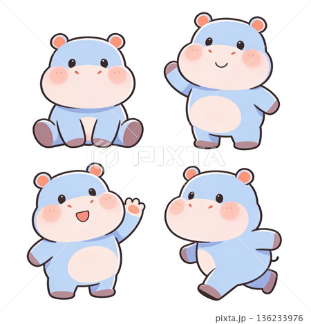 Cute cartoon hippo character set playful pose collection joyful mood