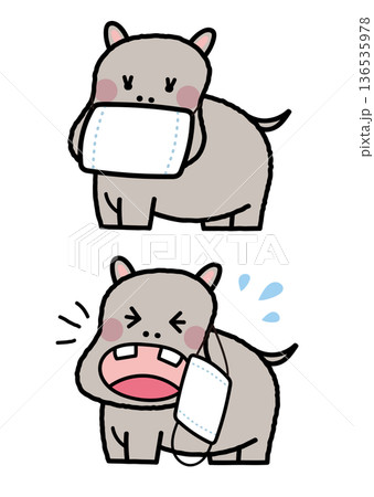 一幅河馬戴著口罩打噴嚏的插圖
