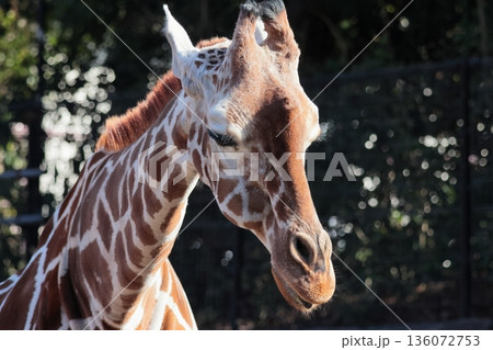 Giraffe in the zoo, closeup of head and neck
