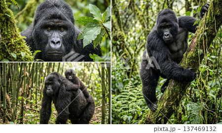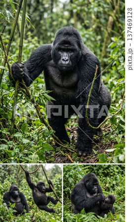 大猩猩擺出各種姿勢│插圖