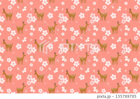 櫻花和鹿的背景插圖