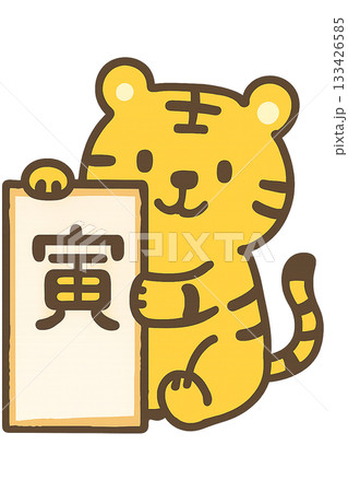 穿著和服的老虎正在拜年