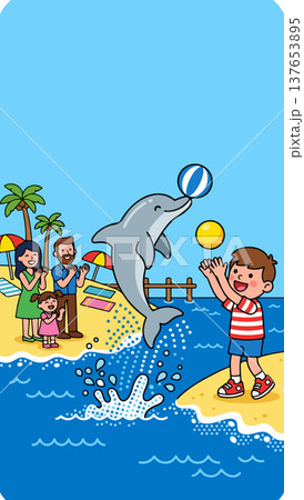 Dolphin playing with a boy on the beach