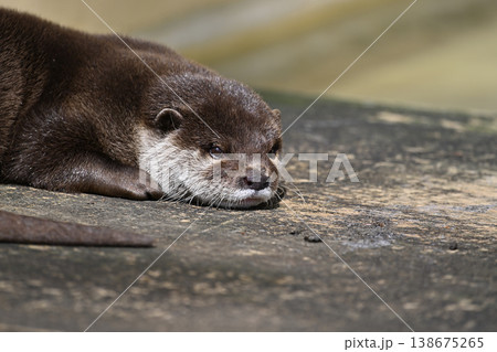 水獺:一隻可愛的、像鼬一樣的眼睛懶洋洋地趴在岩石上。