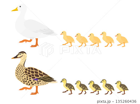 可愛的鴨子父母和孩子插圖素材