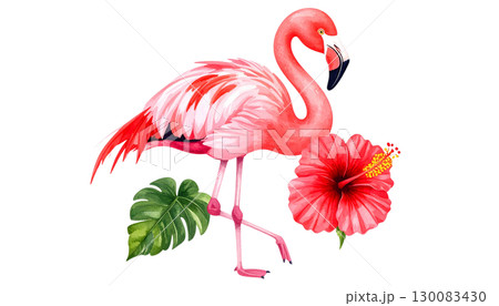 Flamingo, Bird Illustration. Watercolor Style. AI Generated