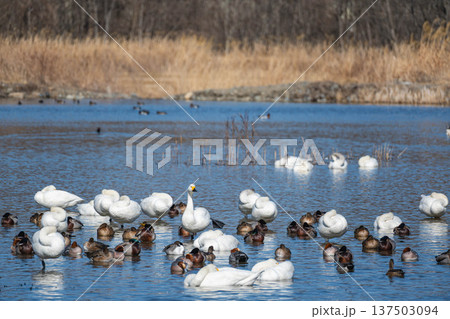 在印西市的“白鳥之鄉”,大天鵝和鴨子聚集在一起。