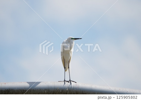 京都市鴨川河岸上棲息的一隻白鷺(小白鷺)
