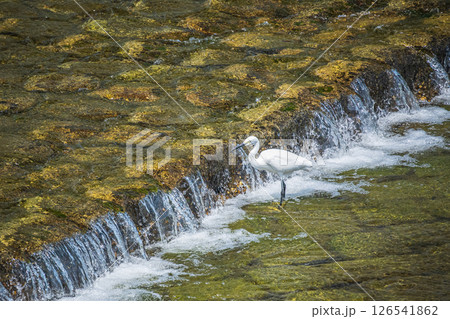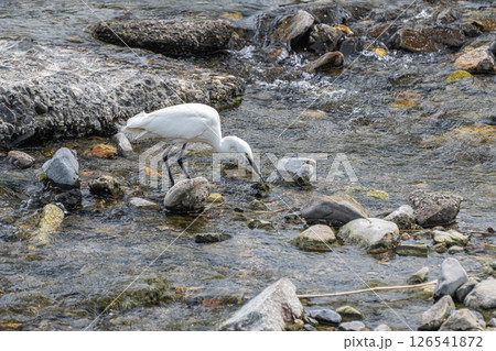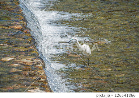 京都市鴨川(鴨川)上覓食的白鷺(小白鷺)
