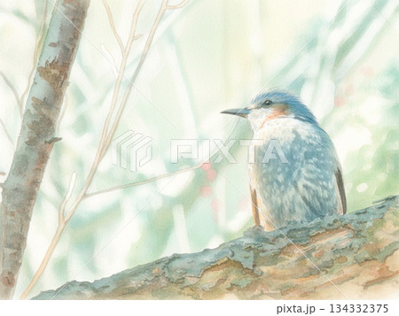 日本灌木鶯鳥,日本灌木鶯,水彩畫,裝飾,春天,可愛,插圖素材