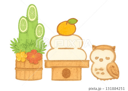日本新年裝飾和貓頭鷹插圖
