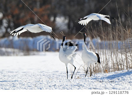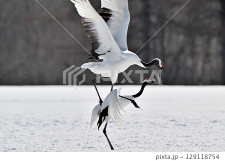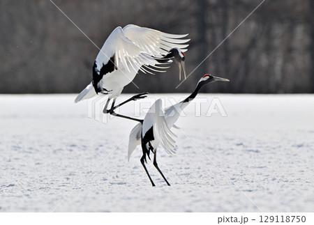 丹頂鶴的求偶舞-北海道東部的冬季風景