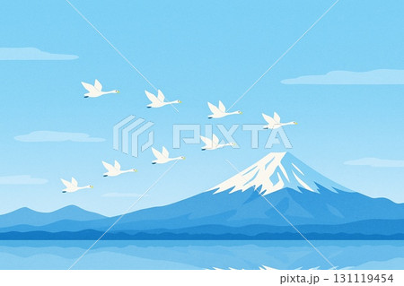 天鵝、V 字隊形、候鳥、富士山、向量圖