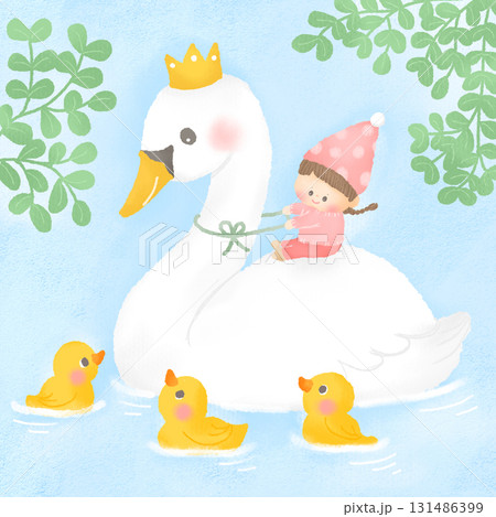一組鴨子父母和孩子漂浮在水面上的插圖