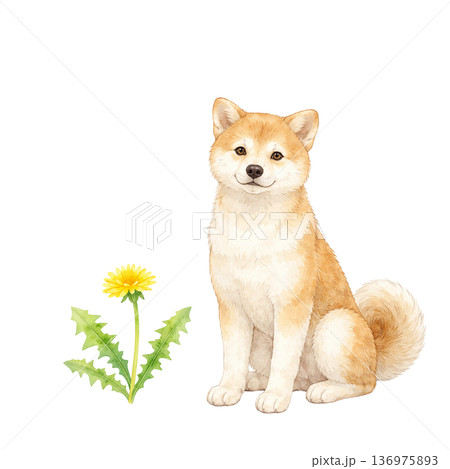 柴犬水彩插畫 | 蒲公英與春天的狗狗素材