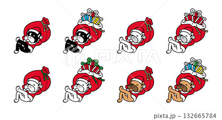 dog vector french bulldog christmas santa claus sleeping gift bag icon cartoon character puppy pet doodle symbol illustration isolated design