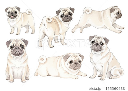 哈巴狗彩色圖示、狗、動物、插圖、材料、無背景、文件創建
