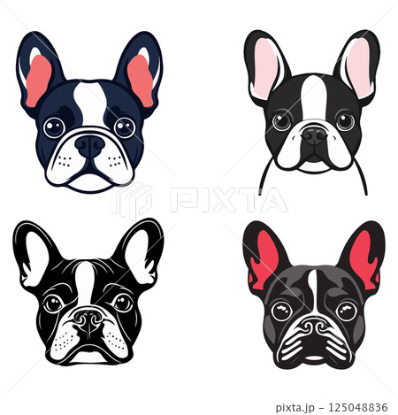 Four French Bulldog Heads