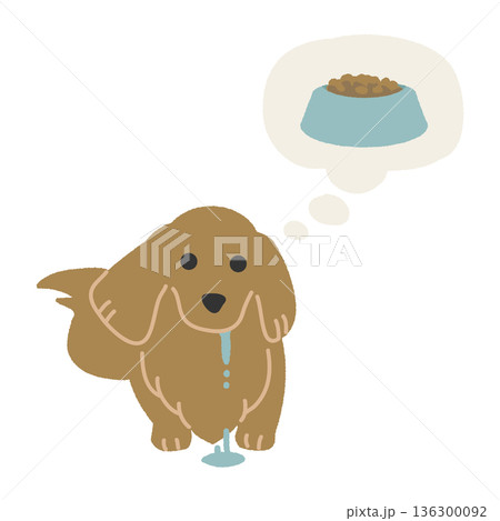 一幅臘腸犬流著口水等待食物的扁平化插畫
