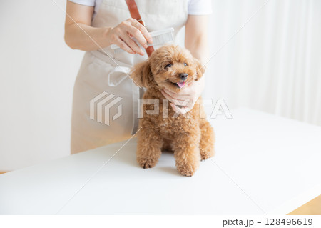 玩具貴賓犬正在梳理