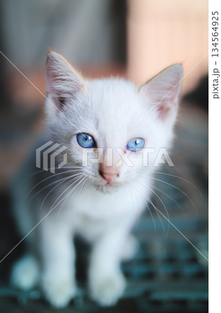 藍色眼睛的白色小貓的肖像