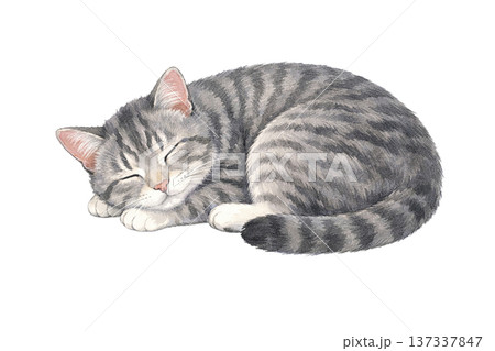 鯖魚虎斑貓水彩插畫,可愛的動物素材,睡貓
