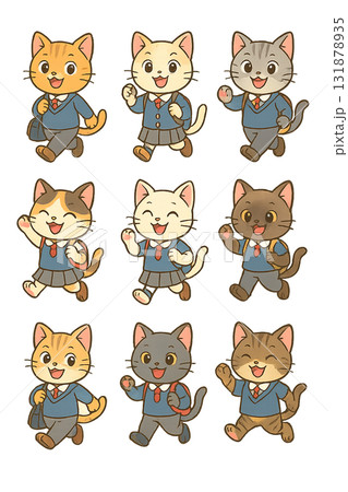 穿著制服的各種貓品種的插圖集