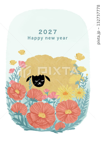 可愛的綿羊新年賀卡2027羊年綿羊人物插圖