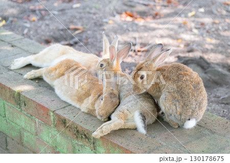 兔子們一起睡在磚牆上