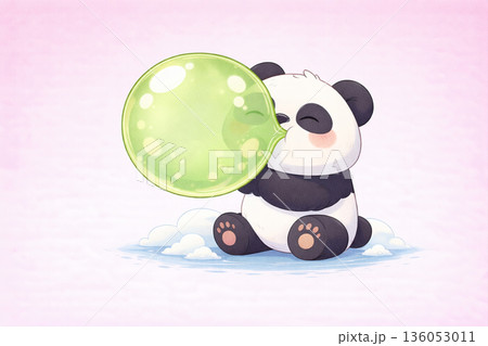 熊貓用竹筍吹出大泡泡