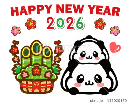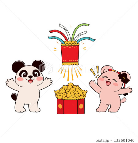 熊貓慶祝2026年新年的插畫素材
