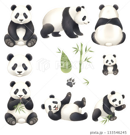 熊貓人物插圖、臉部表情集、僅圖案