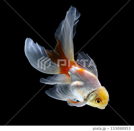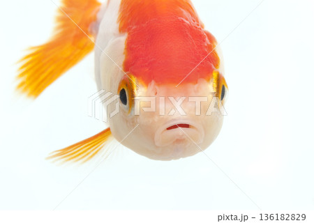 Oranda goldfish isolated on white background close up