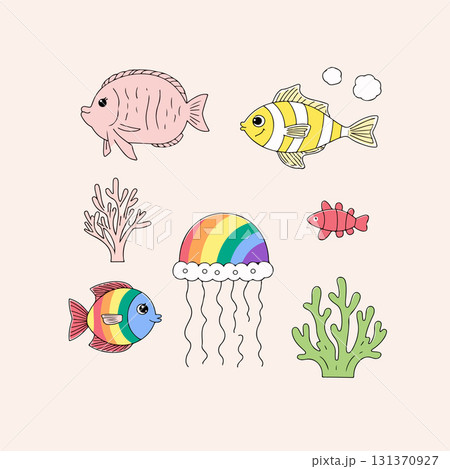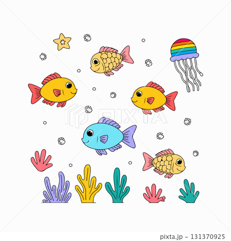 Set of fish and seaweed for seabed design