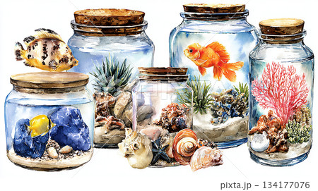 水彩貝殼套裝,扇貝,海螺,可愛,夏季,海洋,自然,裝飾,剪紙