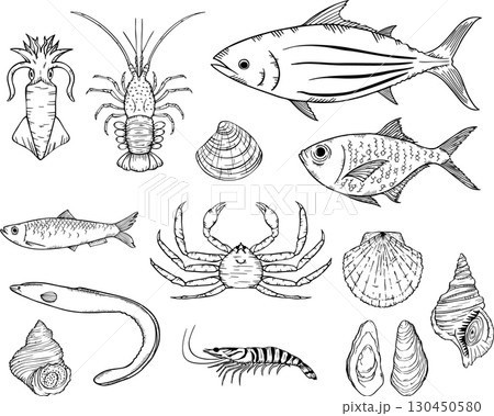 用黑色筆畫的海鮮