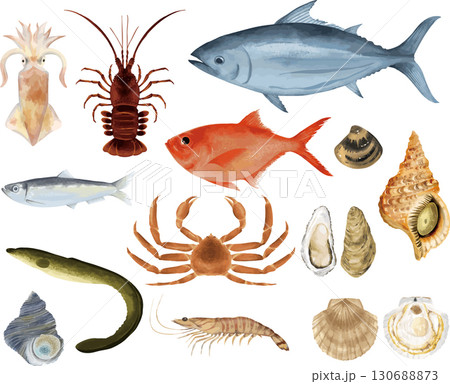 海鮮集圖水彩插圖