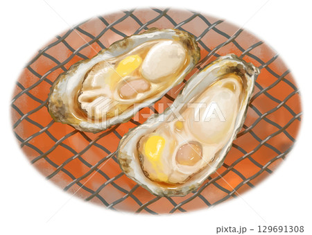 冬天來了!寫實烤牡蠣(奶油和醬油)插畫