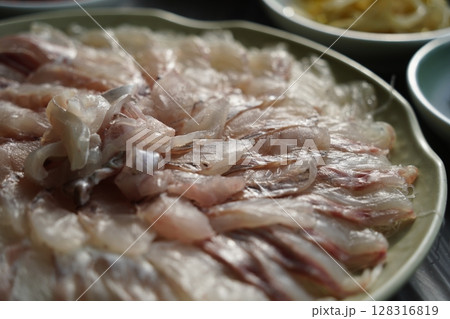 Korean seafood dish. raw fish Sashimi