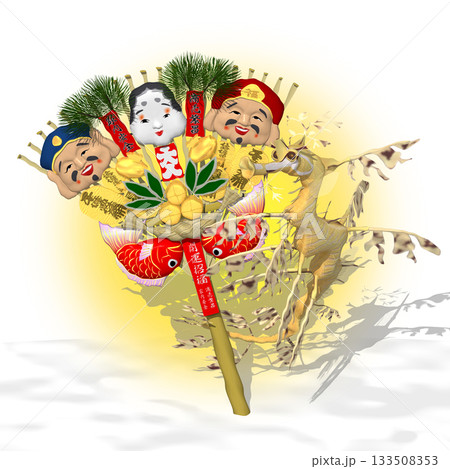 【新年】馬耳他犬騎在鯛魚上的插圖 / 冠袴