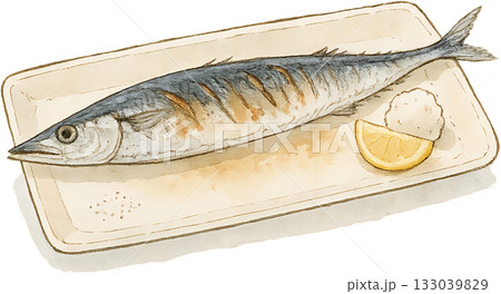 烤鮭魚和筷子水彩插畫集AI生成