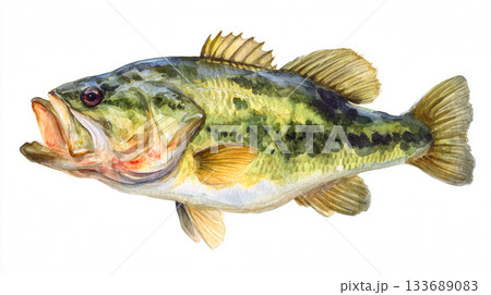 Watercolor a large mouth bass fish clip art illustration isolated on white background