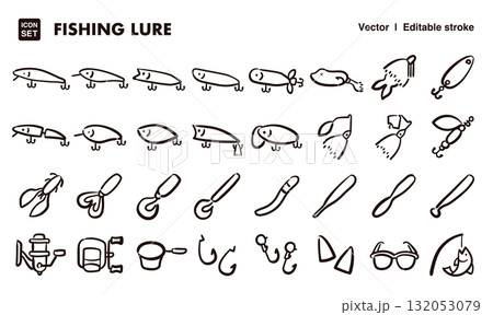 誘餌和釣魚設備圖示插圖集 EPS 版本可以編輯線條粗細等