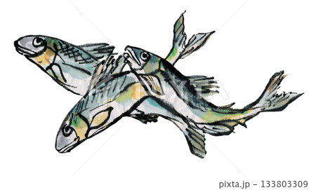 香魚墨畫、水墨畫、水彩畫、書法、向量圖