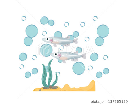 兩隻可愛青鱂魚的插畫素材 2