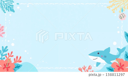 一張可愛的海洋背景圖,上面有一條鯨鯊。