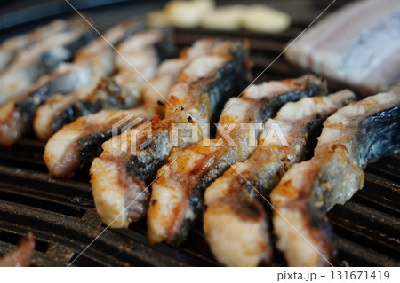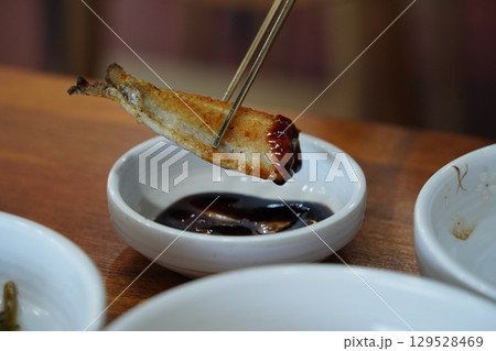 Korean food. Grilled eel. Three flavors. Spicy sauce, salt, soy sauce
