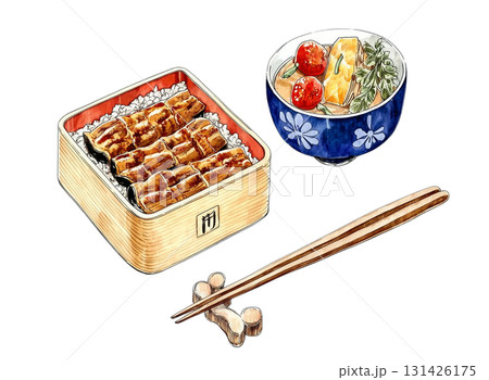 水彩插畫、手繪插畫、模擬插畫、鰻魚飯