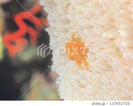 網紋珊瑚蟹生活在白化的珊瑚上。 Hirizohama Nakagi 南伊豆鎮 伊豆半島 靜岡縣 2024
