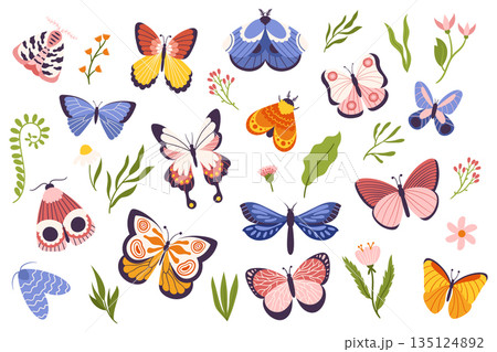 Set Of Colorful Butterflies and Moths, Each Unique In Size, Shape, And Color, Representing The Beauty And Diversity